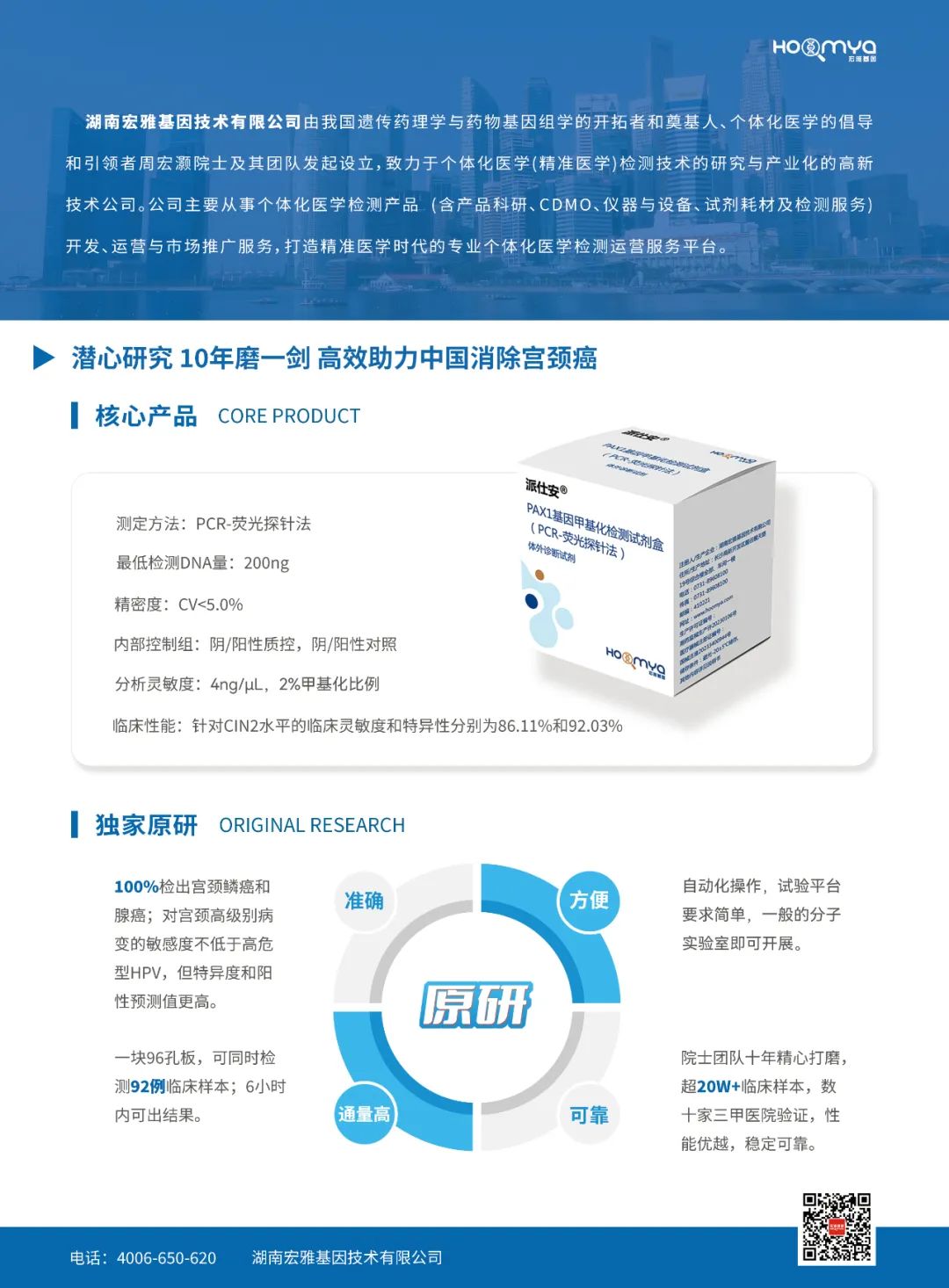 最後,呂衛國(guó)教授在會(huì)上(shàn↕₽≤αg)介紹了(le)宏雅基因派仕安®PAX1基因甲基化(huà)檢測&≥"試劑盒,并表示随著(zhe)甲基化(huà)技(jì)術(shù) ✔•在臨床應用(yòng)相(xiàng)關共識及指南(nán)的(de)推™ γ出,期待甲基化(huà)技(jì)術(shù)能(✔γ₽λnéng)在宮頸癌的(de)防治、診療方®↕★面取得(de)更加顯著的(de)成果,實現(xiàn€♥")助力宮頸癌防控,保障女(nǚ)性健康,高(gāo)效助力中國(g"$✘uó)消除宮頸癌。